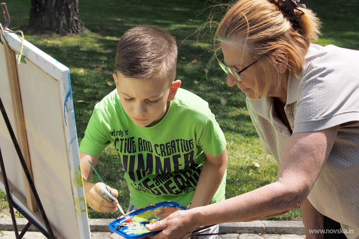 Hladovina novljanskog parka i rasprskavajuće kapljice fontane bila im je dodatna inspiracija, a u slikanju pomogli su i i prolaznici, tek da povuku pokoji potez kistom i osjete se poput slikara.