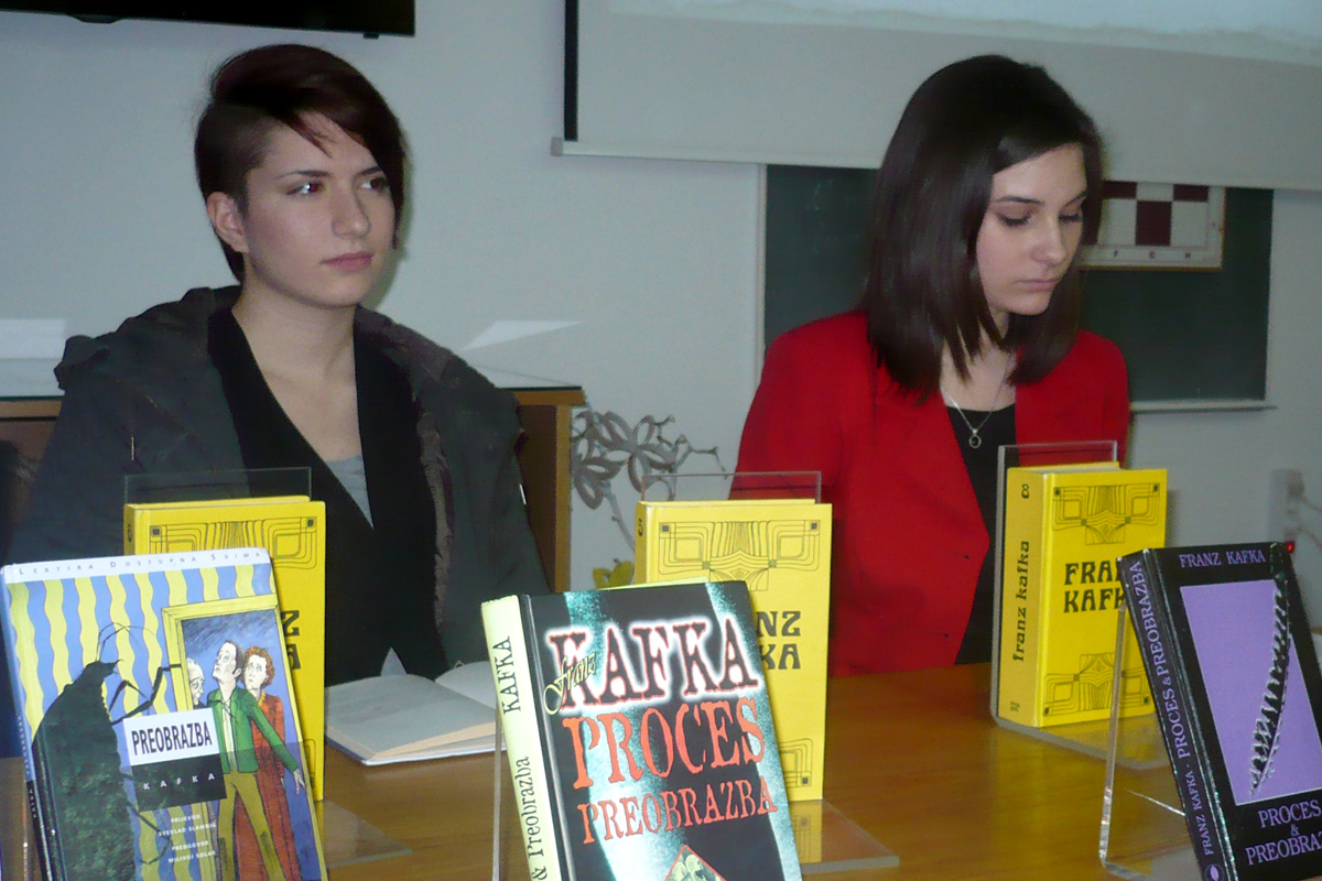 Otvorenje izložbe u Srednjoj školi Novska predavanjem o Kafki popratila je profesorica hrvatskog jezika Željka Pugelnik Vuković, uz čitanje Lane Matičević i Sanje Mijoković, maturantica gimnazije te glazbenu pratnju Ivane Doležal, učenice flaute.