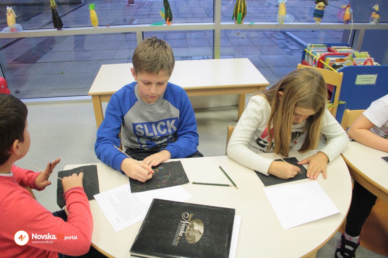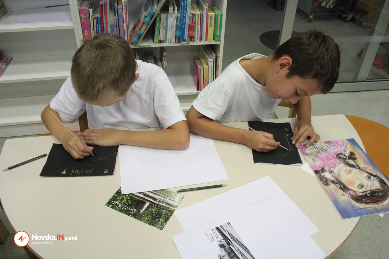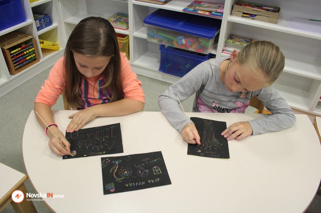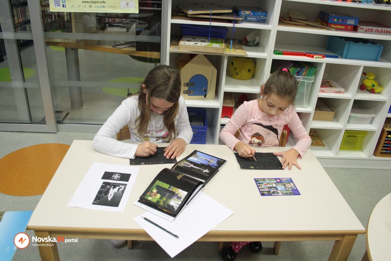 Kreativnom radu na obadvije radionice prethodile su priče naše sugrađanke i književnice za djecu Jasne Popović Poje, koja je počastila sve prisutne svojim dolaskom na kreativnu radionicu “Razglednica moga grada” i pričanjem priče “Tajana na novljanskom jezeru“.