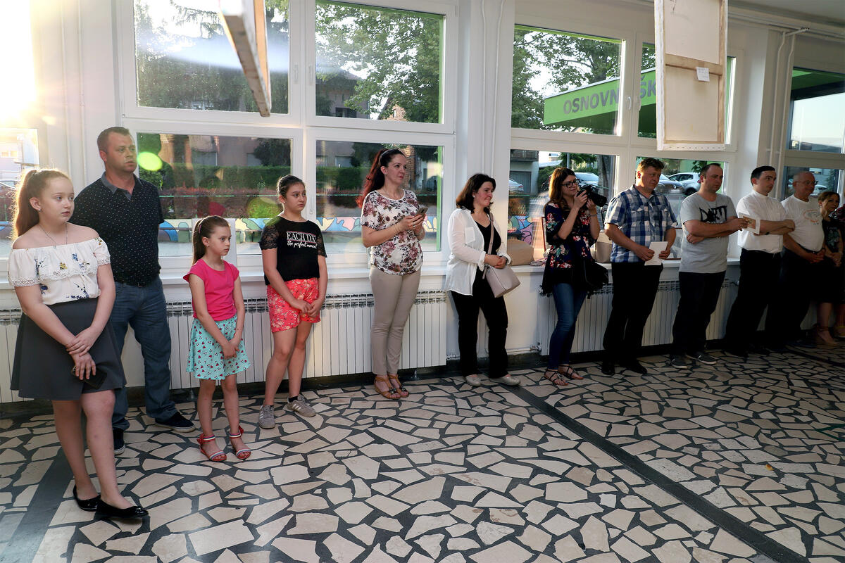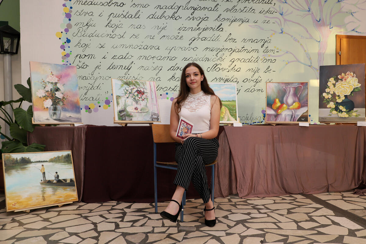 Nova nada novljanske likovne scene Elena Poklečki, učenica Osnovne škole Novska, za svoju prvu samostalnu izložbu odabrala je prostor hola svoje škole.