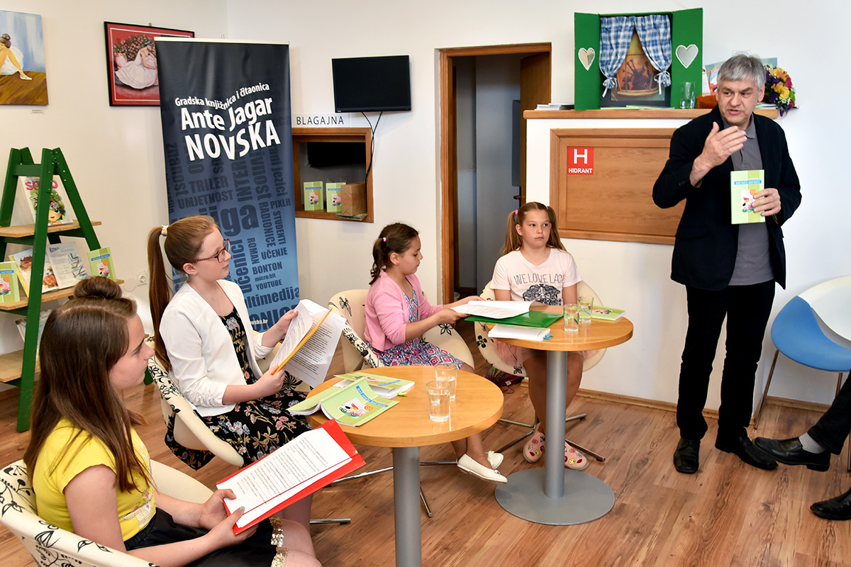 Svako predstavljanje zbirki pjesama i knjiga Jasna Popović Poje povjeri svojim učenicima, pa su tako zbirku “Baš hoću, baš neću” čitanjem ulomaka i pjesama, kroz dopadljivu interpretaciju, govorile učenice 4a razreda Osnovne škole Novska – Vlatka, Elena, Dora i Patricija.