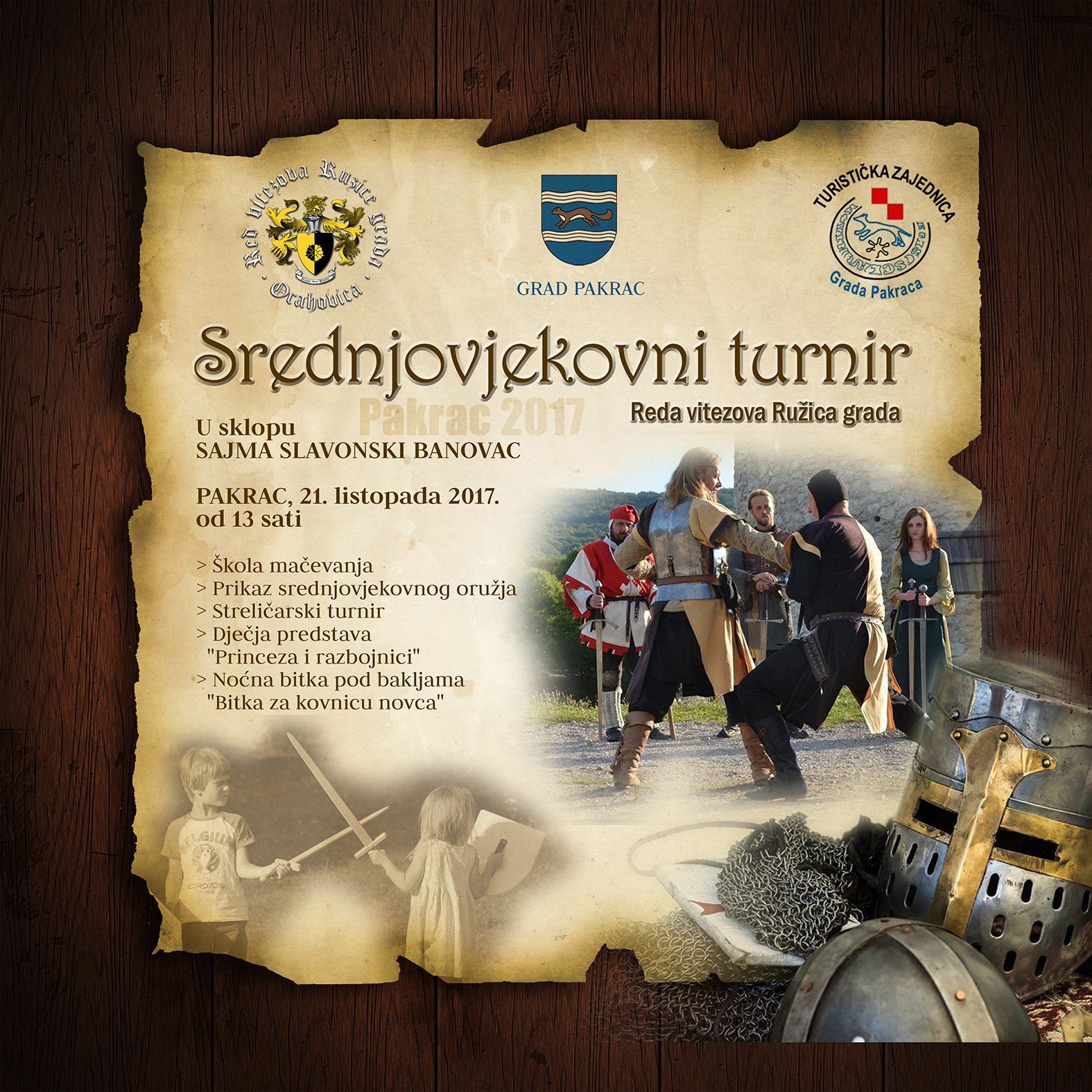 Središnji događaj biti će Bitka za kovnicu novca koju će vitezovi iz Orahovice upriličiti od 18 sati, ali prije sam bitke, posjetitelji će imati prilike uživati u brojnim srednjovjekovnim sadržajima. Biti će organiziran prikaz srednjovjekovnog oružja kao i mala škola mačevanja, zatim streličarski turnir te predstava za djecu „Princeza i razbojnici“. Neizostavno je i kovanje banovca, prvog hrvatskog novca koji je u Pakracu kovan od 1256. do 1260. godine, a koji će, u povodu održavanja Sajma, ponovno biti kovan u Pakracu.