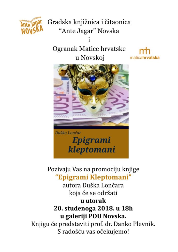 PROMOCIJA KNJIGE – Duško Lončar – “Epigrami Kleptomani”
