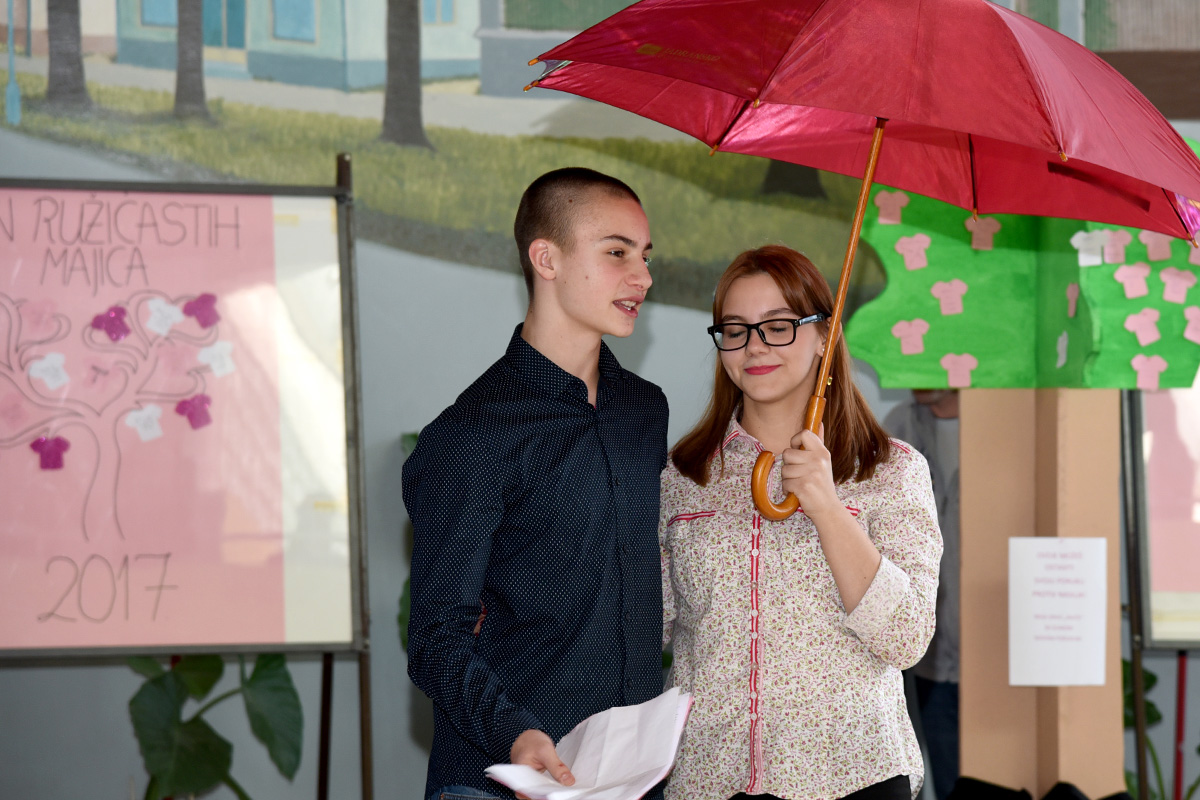 “Dan ružičastih majica” kampanja koji su učenice i učenici prihvatili dolazeći u školu u ružičastim majicama, a uz pomoć svojih profesora pripremili su program u kojem su sudjelovale profesorice Helena Vori, Danijela Pauković i Željka Pugelnik Vuković.