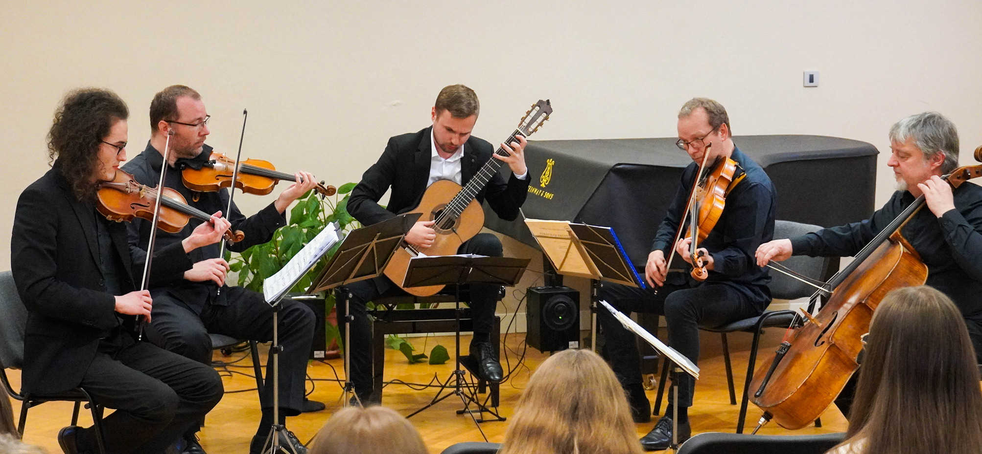 U drugom dijelu koncerta, uslijedio je Kvintet za gitaru i gudački kvartet Op. 143 skladatelja Maria Castelnuovo-Tedesca, kojom su glazbenici izazivali prekrasne slike u glavi. U tom trenutku, Zagrebačkom kvartetu se pridružuje, Luka Lovreković, profesionalni gitarist školovan u Muzičkoj akademiji u Zagrebu i Grazu te dobitnik mnogobrojnih nagrada u Hrvatskoj i Europi. U prvim taktovima, gudači stvaraju zvukove koji nas podsjećaju na mirisni vrt, s cvijećem koje miriše po proljetnom zraku. Gitara pak stvara zvukove koji se mogu usporediti s tihim i plitkim valovima mora, koji nježno zapljuskuju obalu. Kao da glazba stvara sliku sunčanog dana na obali, s blagim povjetarcem koji donosi slani morski miris u zraku.