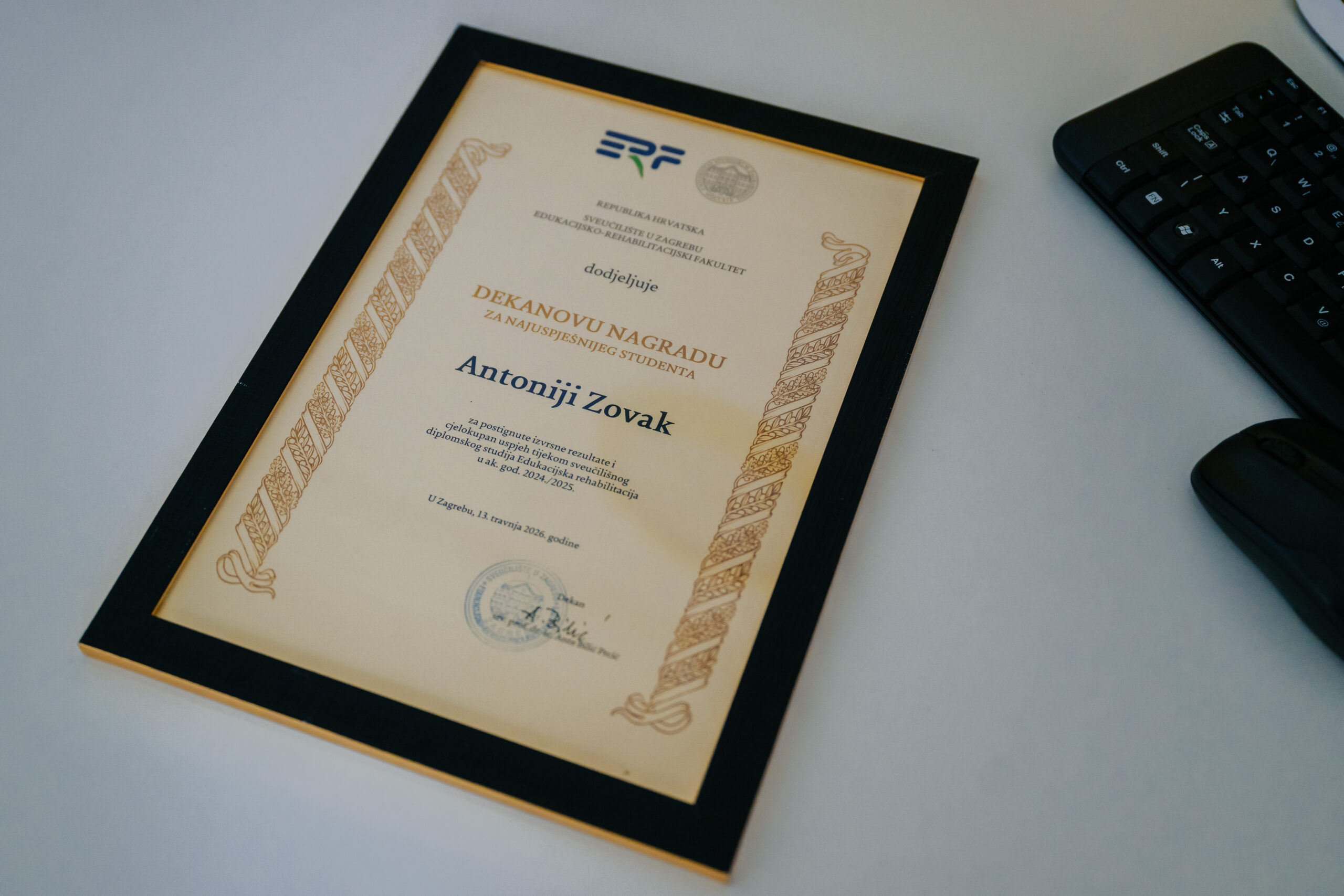 Posebno se ističe kako je edukacijska rehabilitatorica Antonia Zovak dobitnica dekanove nagrade za izvrstan akademski uspjeh, što potvrđuje njezinu predanost, stručnost i kontinuirani rad u području edukacijske rehabilitacije.