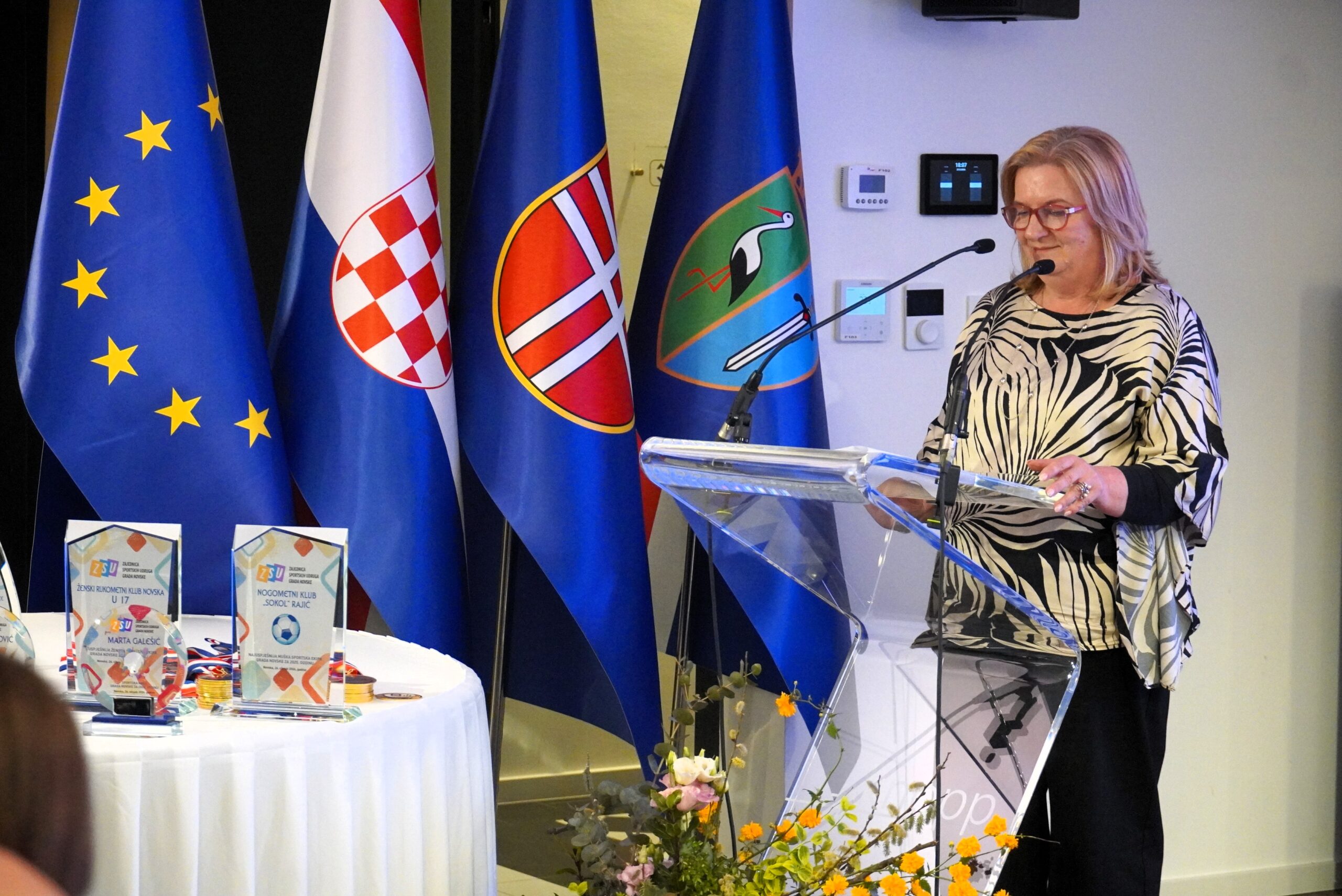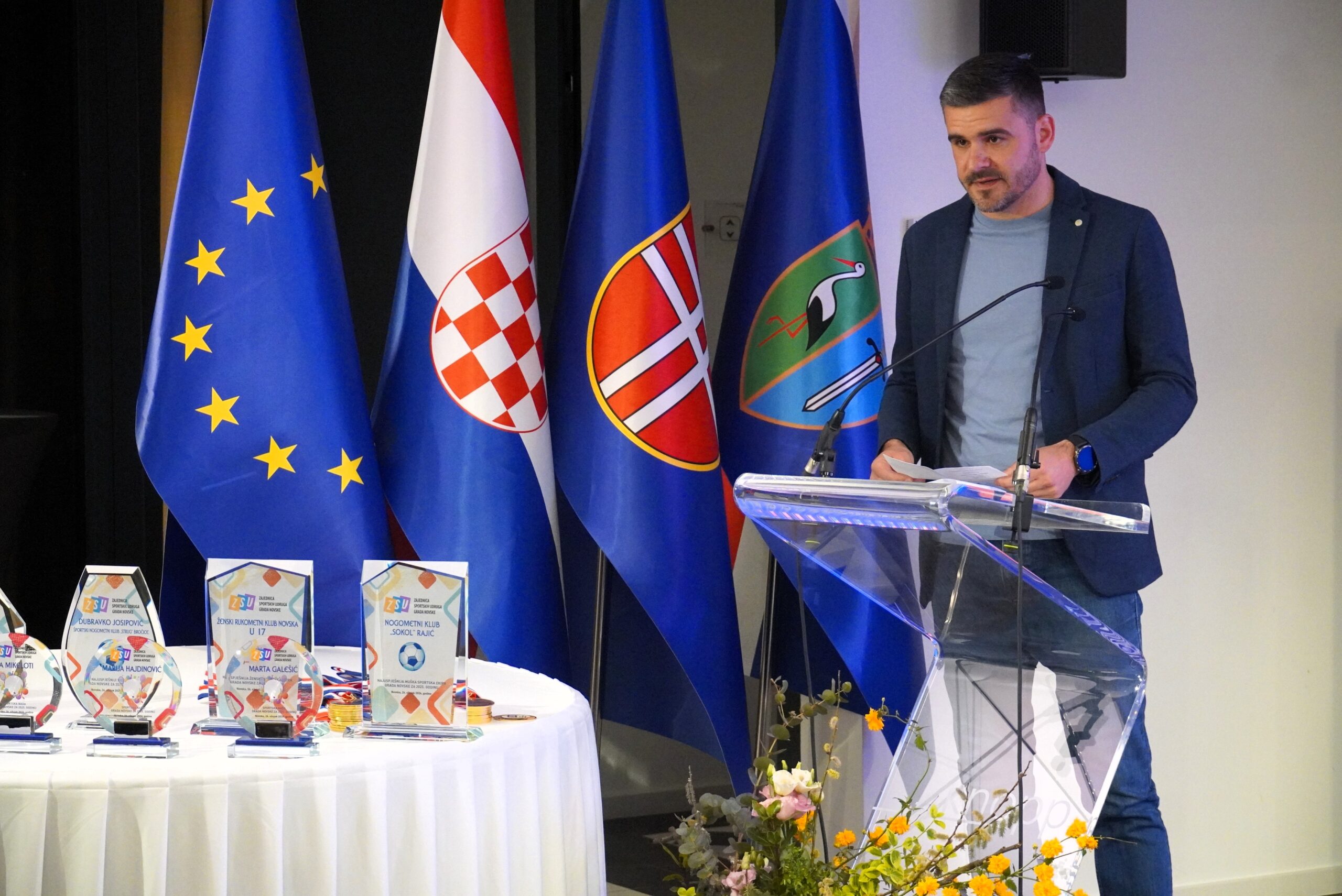 Program je vodila Ljiljana Gavranović, a okupljenima su se uvodno obratili tadašnji predsjednik Zajednice Josip Šimunović i gradonačelnica Marija Kušmiš. U svom govoru gradonačelnica je istaknula kako je Grad Novska snažan partner sportu te kontinuirano ulaže u njegov razvoj. Naglasila je važnost sporta za djecu i mlade, ne samo u fizičkom, već i u odgojnom smislu, istaknuvši kako sport razvija natjecateljski duh, upornost i životne vrijednosti. Pozvala je na dodatno poticanje djece na bavljenje sportom kako bi kroz njega stekli zdrave navike i pripremili se za izazove koji ih čekaju u životu. Također je naglasila kako Grad izdvaja značajna sredstva za rad sportskih udruga, ali i za izgradnju i unapređenje sportske infrastrukture, kako bi sportaši imali što bolje uvjete za rad. Posebno se zahvalila Josipu Šimunoviću na njegovih 12 godina predanog rada na čelu Zajednice, tijekom kojih je novljanski sport podignut na višu razinu, te je svim nagrađenima uputila iskrene čestitke na ostvarenim rezultatima.