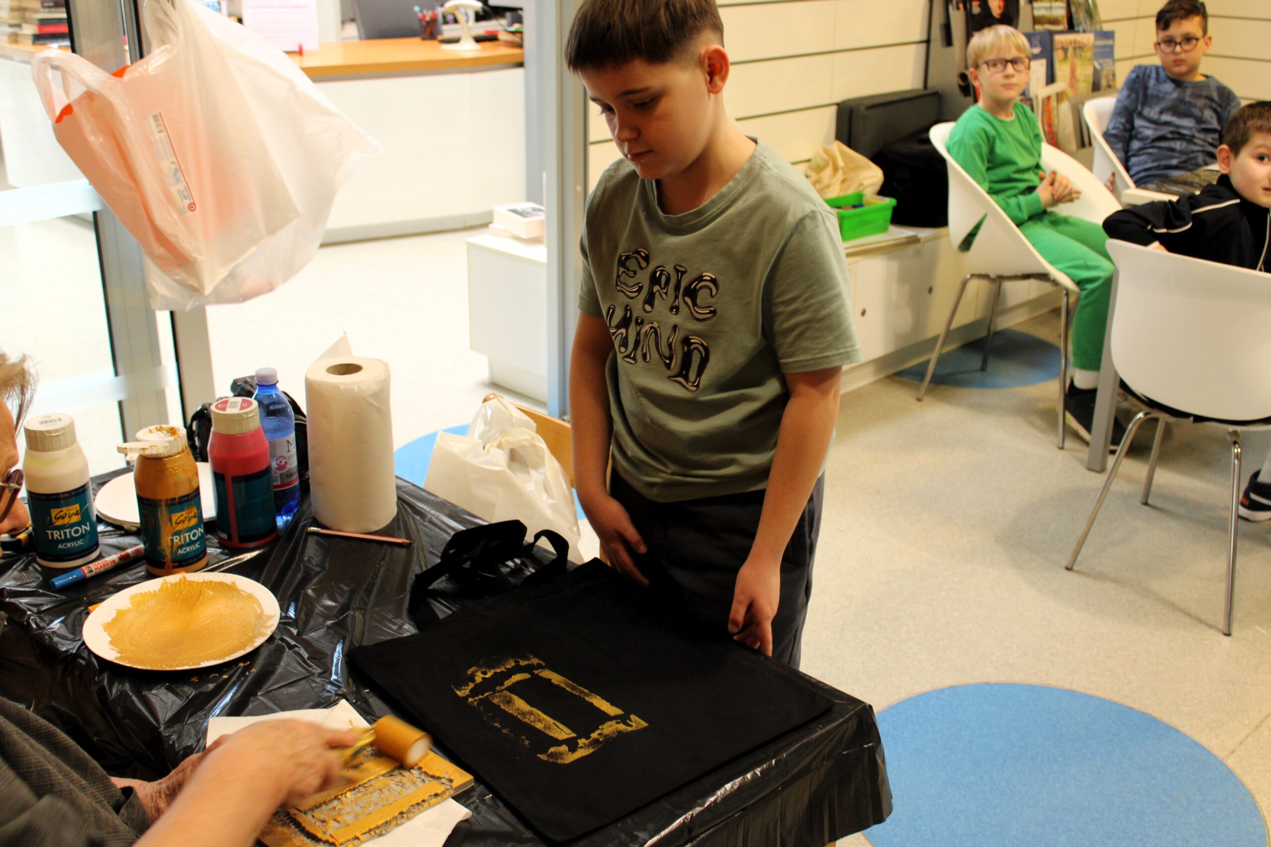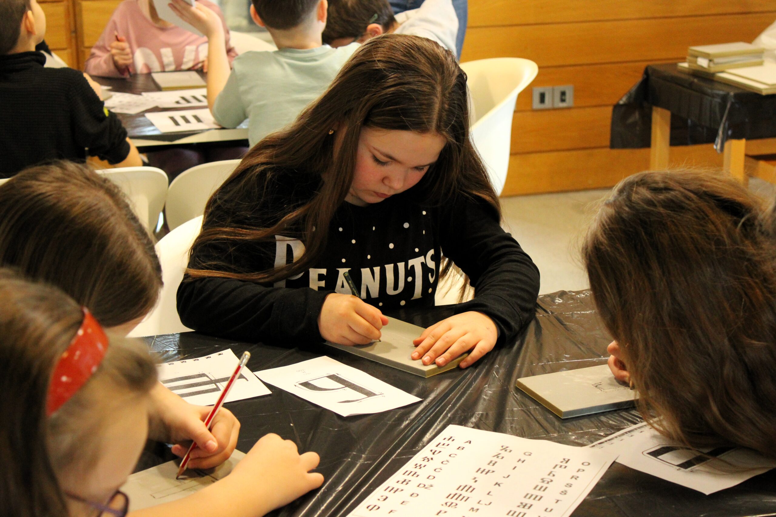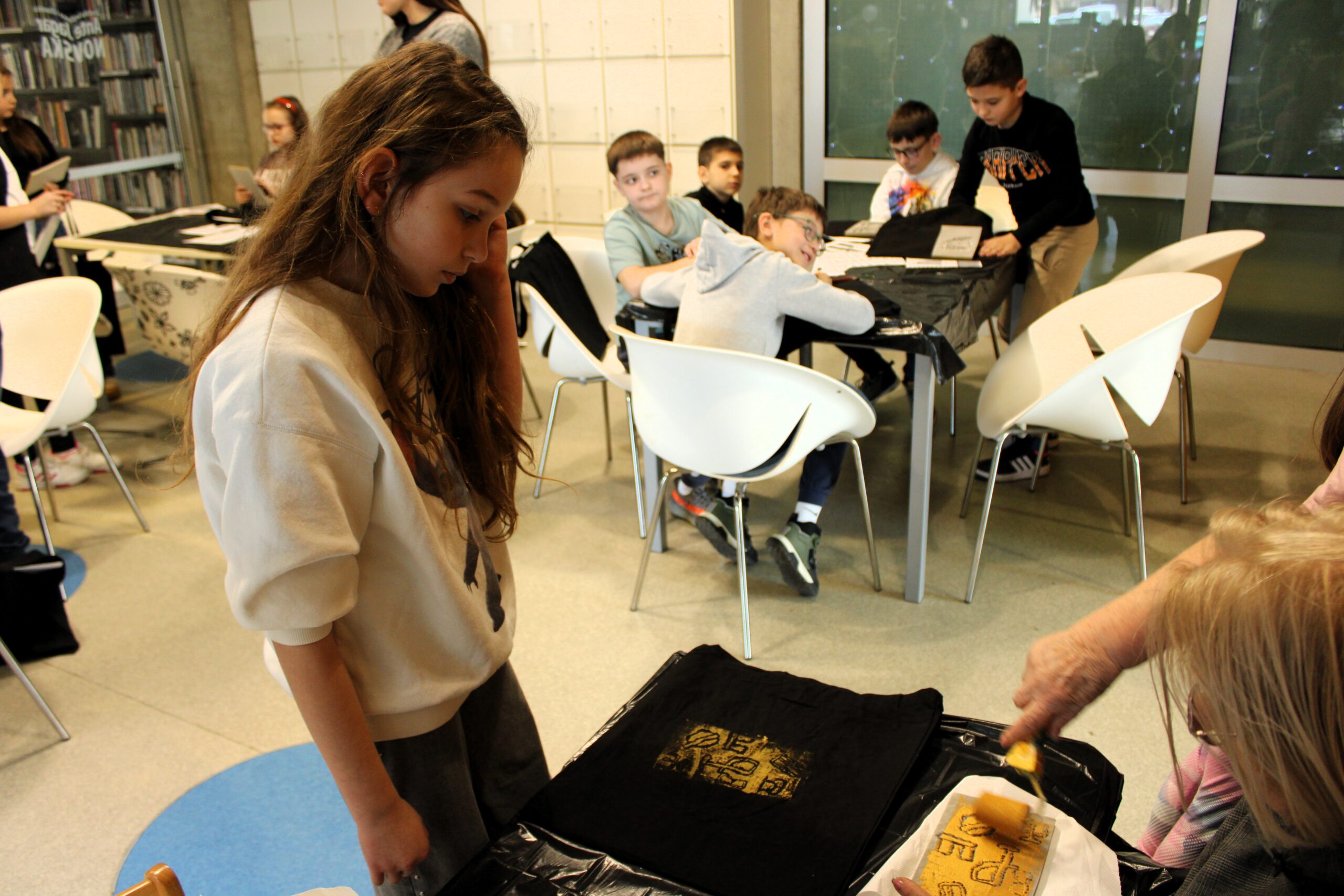 U radionici su sudjelovali učenici trećeg razreda Katoličke osnovne škole u Novskoj sa svojom učiteljicom Dajanom Melnik. Kroz igru, boje i slova, najmlađi su imali priliku upoznati jedno od najvažnijih pisama hrvatske kulturne baštine te ga prenijeti na platnene vrećice koje su ponijeli kao uspomenu na sudjelovanje.
