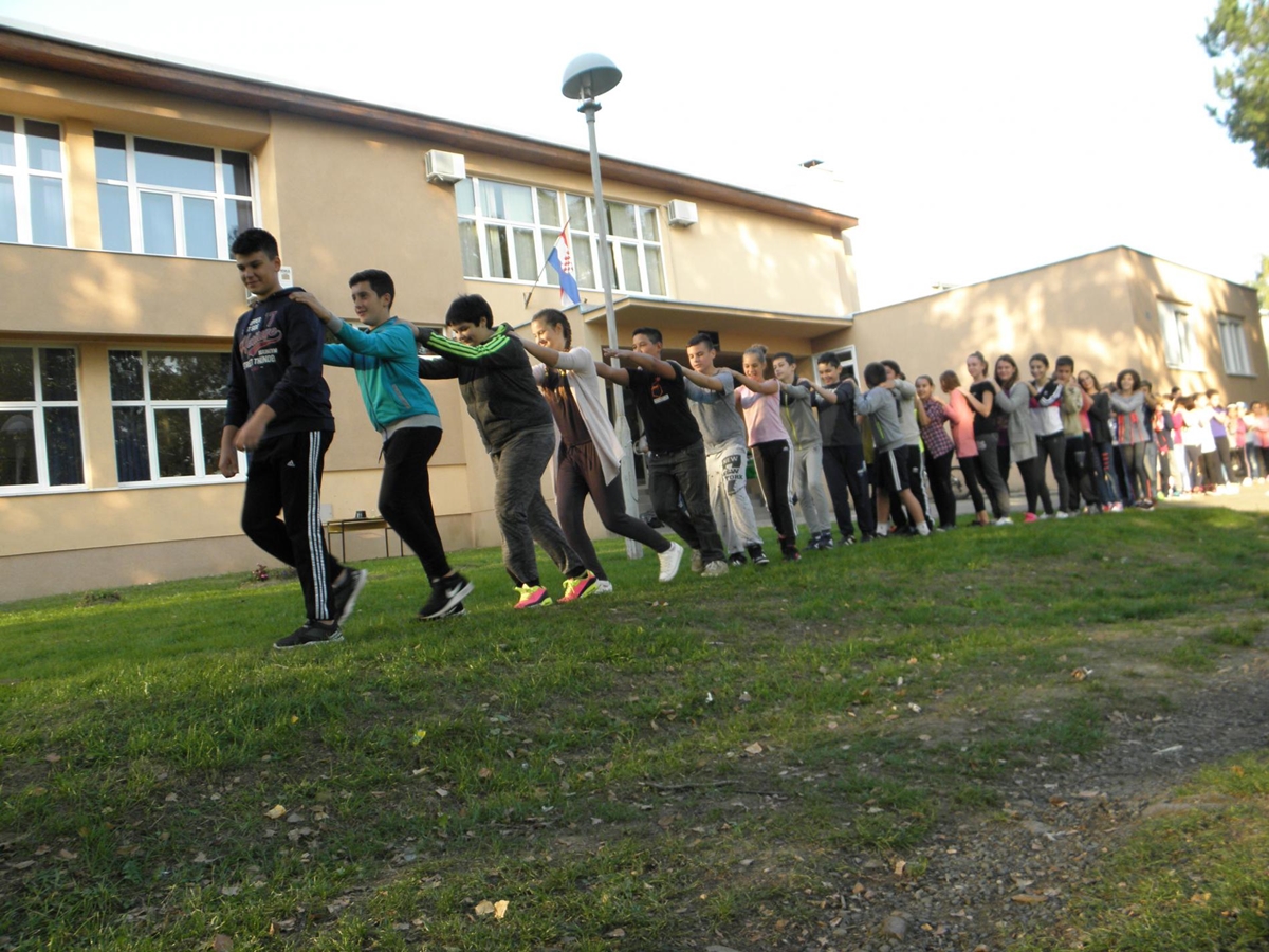Nizom akcija i aktivnosti za djecu i s djecom nastoji se skrenuti pozornost javnosti na položaj djece u društvu. Dječji tjedan započeo je “Međunarodnim danom djeteta“. Točno u podne u parku ispred škole okupili su se članovi DND-a, učenici, učitelji i učiteljice. Zajedno smo napravili veliki krug, te složno i glasno izgovorili ovogodišnji moto: “Ljubav djeci prije svega“.