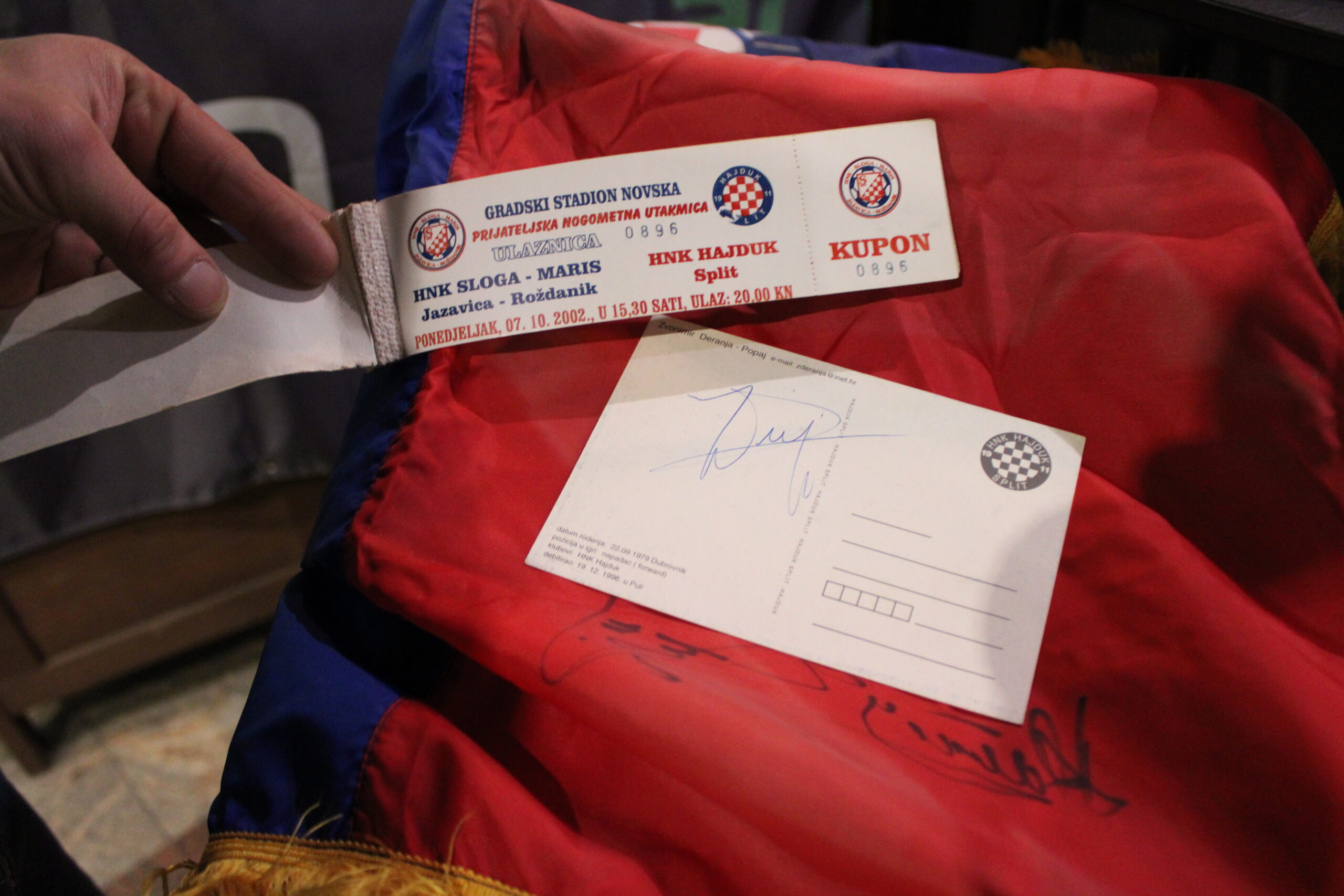 Među zastavama i šalovima ističu se oni potpisani u Novskoj, prilikom gostovanja Hajduka u našem gradu. Potpisi Zvonimira Deranje i Vlatka Đolonge i danas svjedoče tim susretima. U njegovoj kolekciji nalazi se i potpisana fotografija Davora Šukera iz vremena kada je potpisao za Real Madrid – uspomena koja ima posebnu vrijednost.