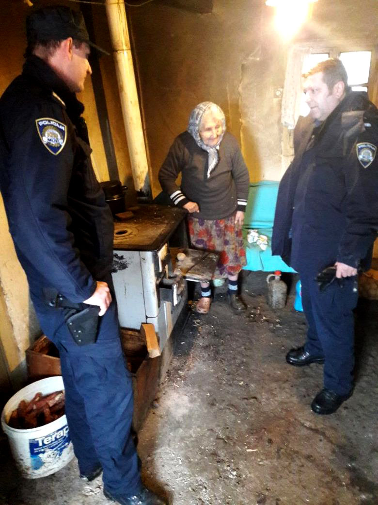 U trošnoj i osamljenoj kući zatekli su 86-godišnju Danicu Knežević, koja živi sama i nekoliko dana nikoga nije vidjela. Policajcima je kazala kako joj je ponestalo hrane, a i za ogrjev joj je ostalo samo nekoliko cjepanica.