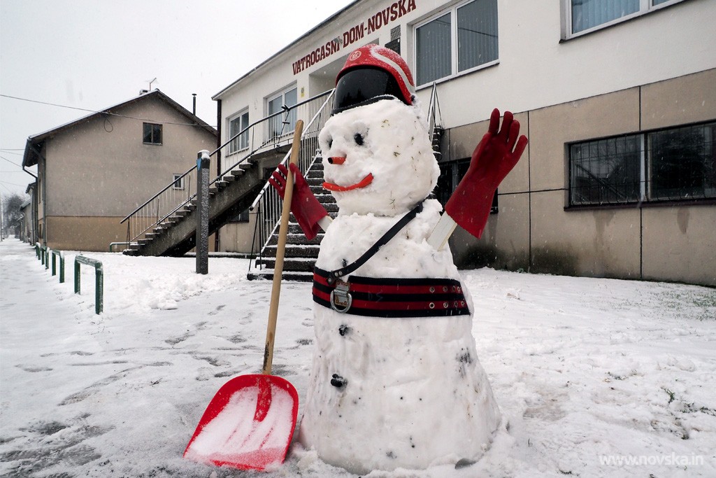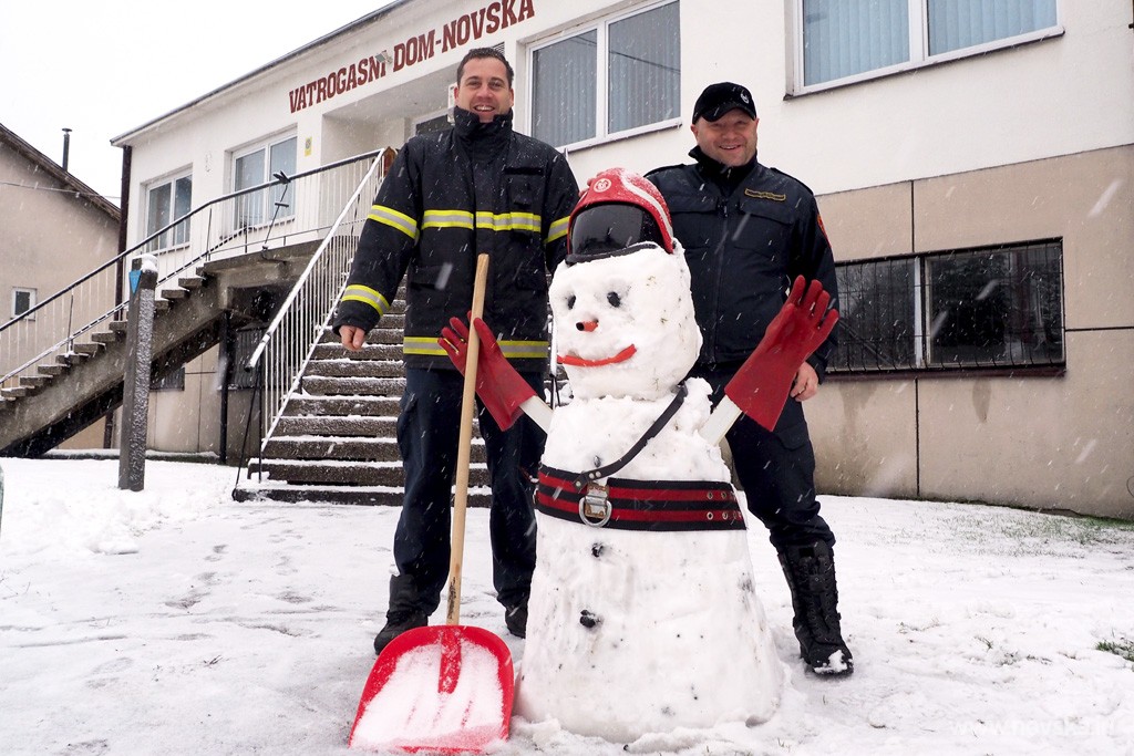 Da se i novljanski vatrogasci znaju prepustiti zimskim radostima, dokaz je snjegović vatrogasac kojeg su napravili ispred Vatrogasnog doma.