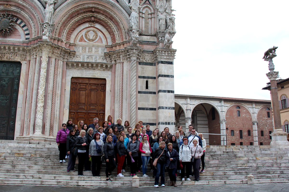 Obilazak znamenitosti Toskane započeo je posjetom Siene, rodnog grada sv. Katarine, razgledanjem katedrale San Domenico te čuvenog trga Piazza Del Campe.
