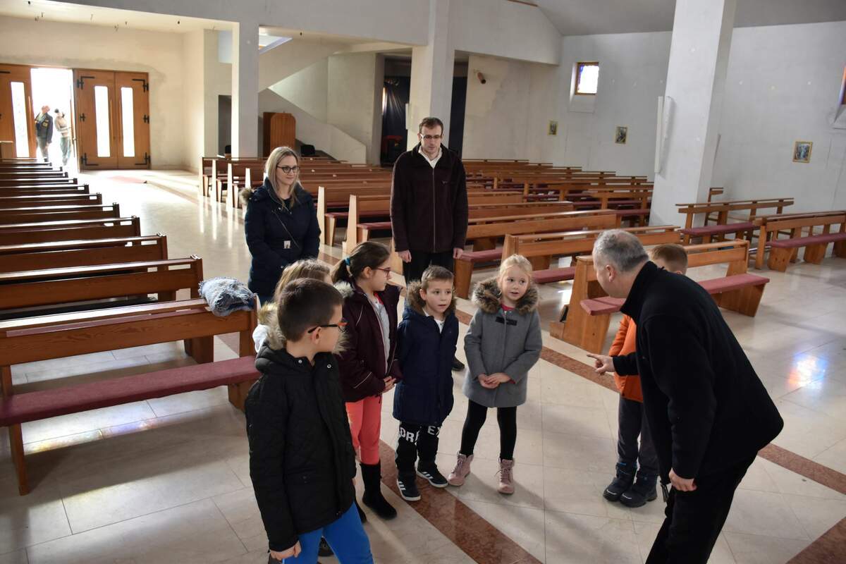 Na ulazu u župnu crkvu dočekao ih je i pozdravio župnik Perica Matanović koji je učenicima objasnio značenje imena Caritas i njegovu svrhu u životu župe ističući mnoge djelatnosti koje se provode u sklopu njegova rada.