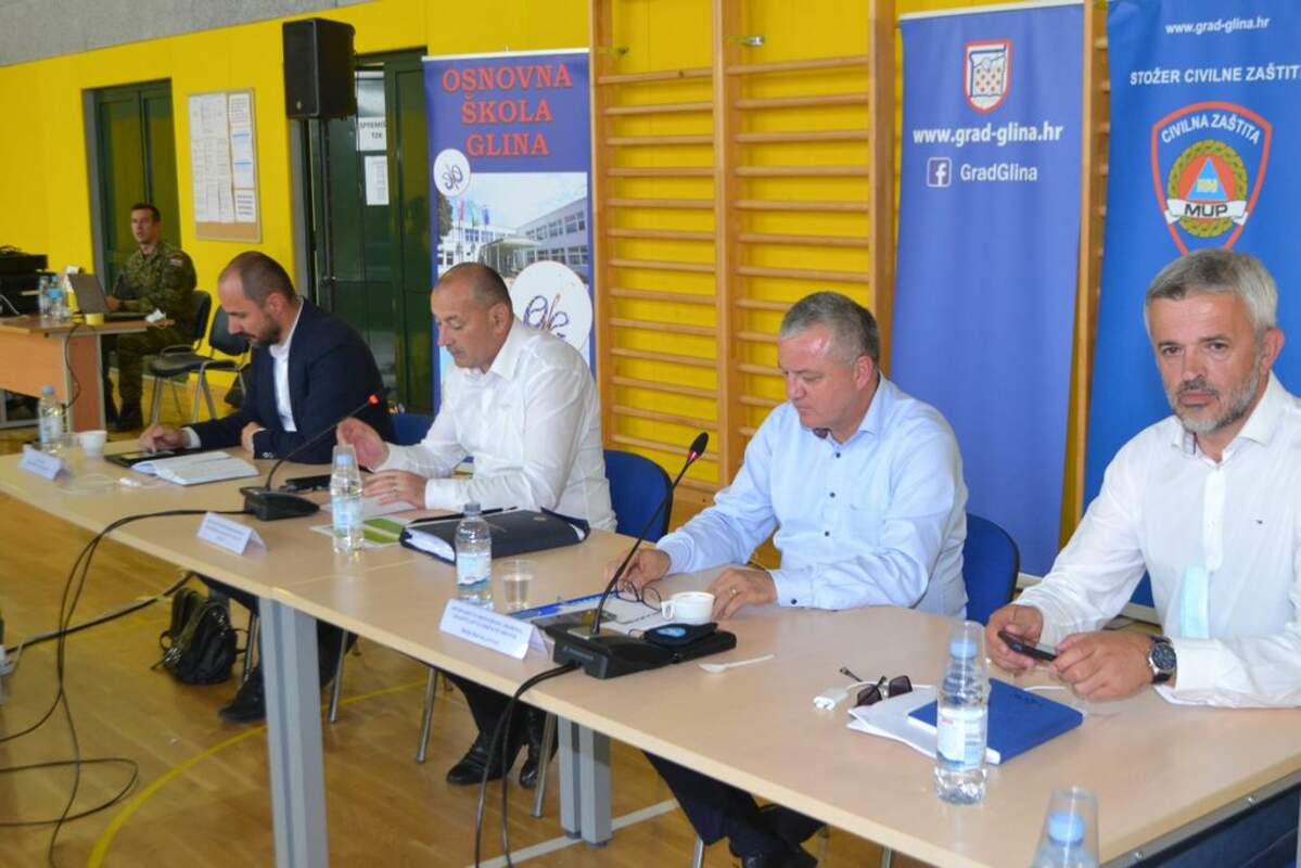 Zamjenik župana Mihael Jurić je u petak, 25. lipnja 2021. godine, u sportskoj dvorani OŠ Glina nazočio sjednici Stožera Civilne zaštite za otklanjanje posljedica potresa.